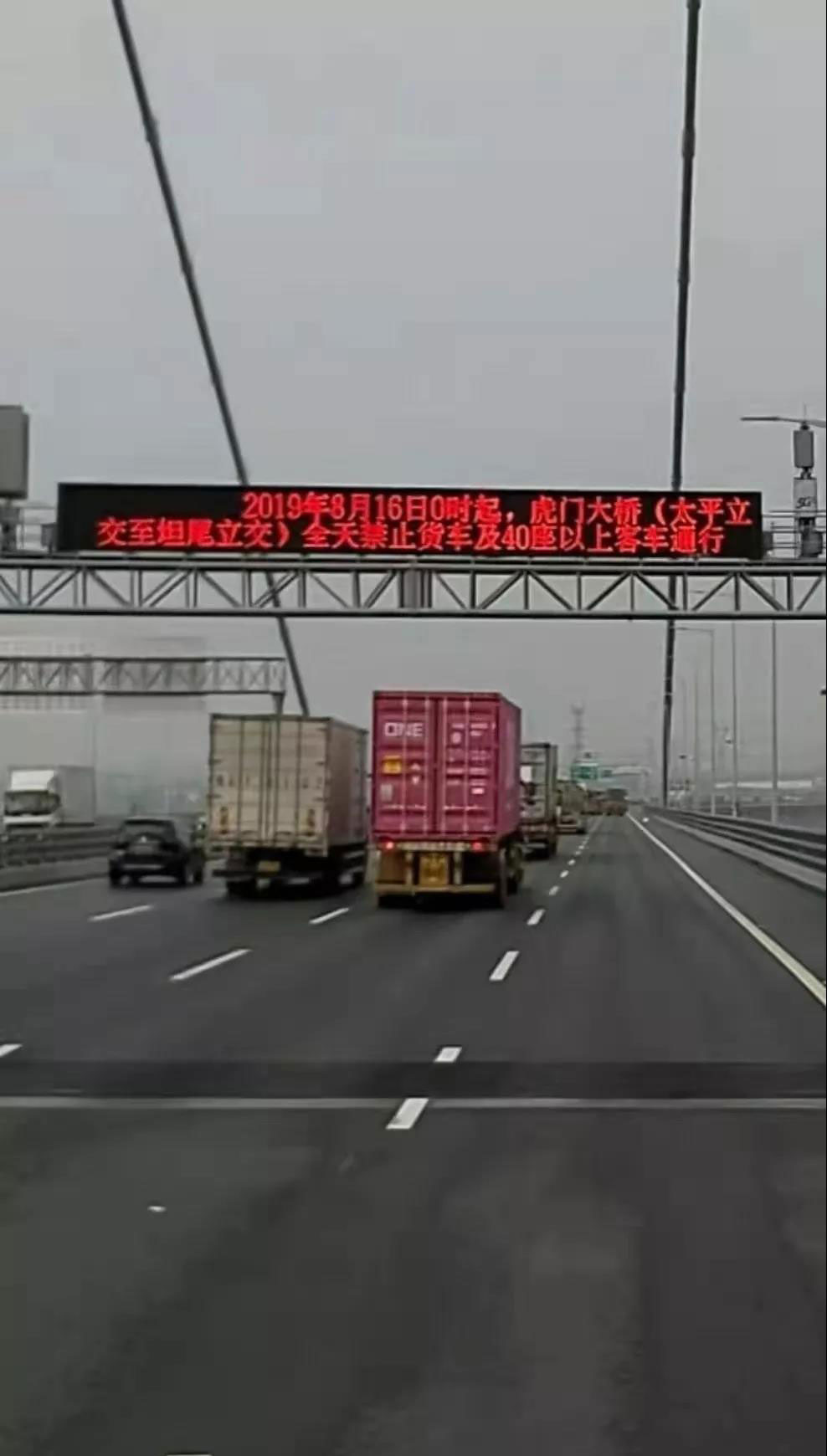 2019年8月16日还有一天时间,虎门大桥车友反馈,虎门大桥附近道路显示屏通知新内容