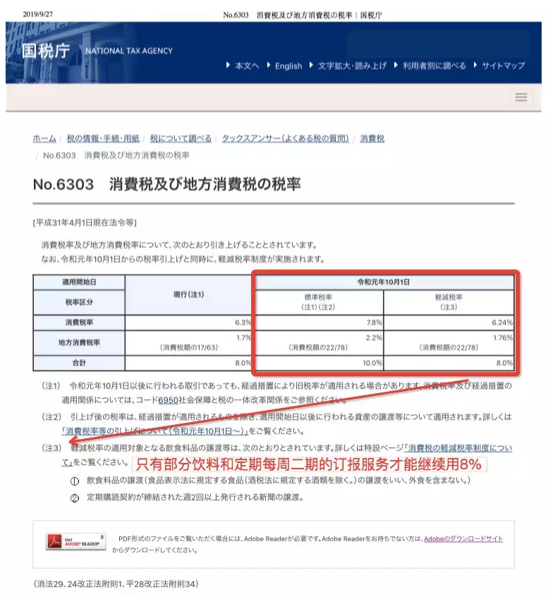 2019年10月1日起消费税从8%涨到10%通知: