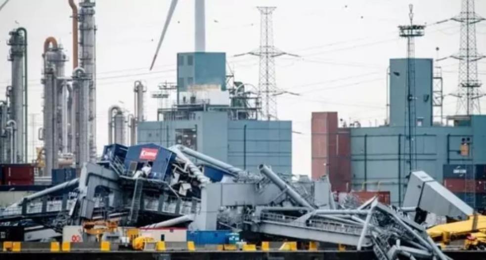 事故导致码头岸桥被撞塌,并使欧洲第二大港口--安特卫普港被迫临时停摆(all cargo operations in harbor were suspended)!