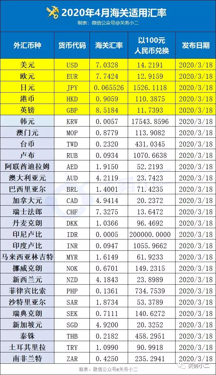 2020年3月18日是2020年3月份的第三个星期三,2020年4月的海关适用汇率也可以确定了。东浩物流搜集整理了2020年4月海关汇率,方便大家进行4月份的进出口贸易成本核算。