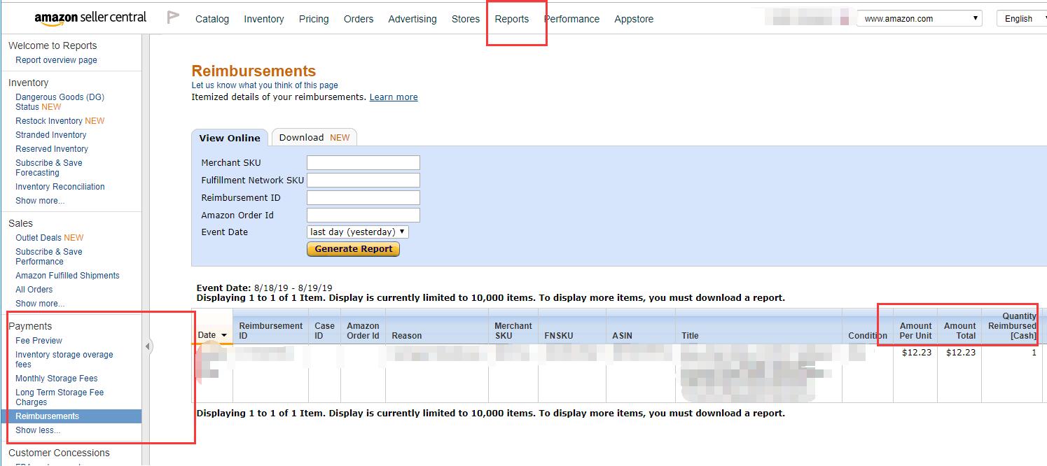 或者从Reports-Payments-Date range reports 下载表格,然后在Type下筛选Adjustment,找到FBA Inventory Reimbursement - Customer Return这列查看赔偿金额。